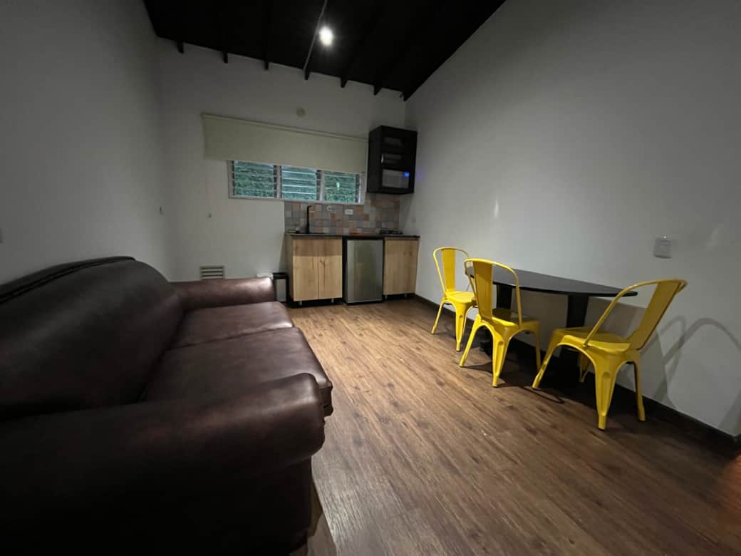 Apartamento de aproximadamente 38 m², distribuido en dos ambientes: un dormitorio con cama doble y un área de cocina.Cuenta con baño privado y está totalmente equipado para una estadía cómoda: TV de 43”, cocina con microondas, cafetera, mini nevera, Wi-Fi, e implementos esenciales. Ubicado en una casa remodelada y acondicionada para hospedaje, ofrece fácil acceso peatonal a la estación Ayurá del Metro y al Centro Comercial São Paulo. Por favor, revise las reglas de la casa antes de su reserva.